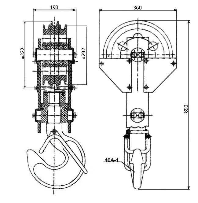 Крюковая подвеска продается в сборе. При выходе из строя или износе деталей их можно заказать отдельно.