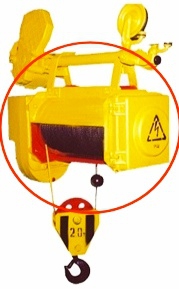 Механизм подъема тали состоит из мотор-барабана, шкафа электроаппаратуры, двуступенчатого редуктора и корпуса, который соединяет все узлы механизма подъема.