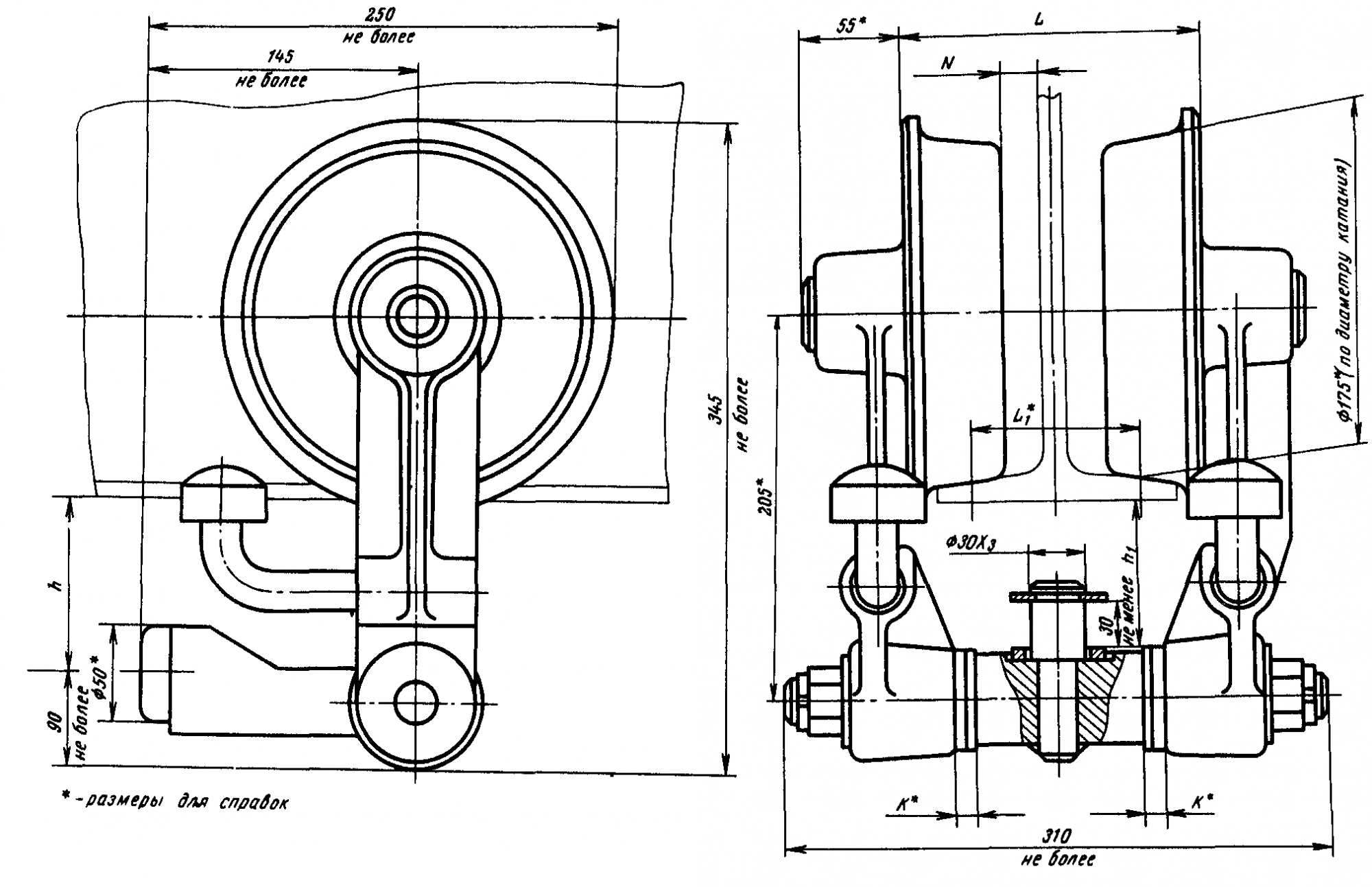 Шарнирная холостая не приводная тележка ТШН-25 (ТШХ-25) грузоподъемностью до 3.2 тонны используется исключительно в отечественном грузоподъемном оборудовании (электрические тали, концевые балки, на воротах и т. д.).